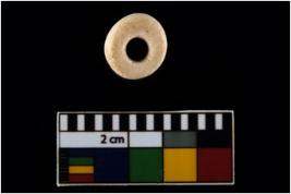| Description / विवरण | A complete specimen of an oblate shaped bead with a circular cross-section. It is whitish in colour. It is having a medium sized perforation which is approximately more than 1 4 of the diameter. It bores from one end only. It is having matt finish and smooth surface. It is symmetrical round its axis. |