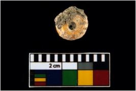 | Description / विवरण | A complete specimen of a short convex bicone disc shaped bead with a circular cross-section. It is pale yellowish in colour. It is having a short tubular perforation which is approximately parallel. It bores from one end only. It is having matt finish and smooth surface. It is symmetrical round its axis. |