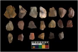 | Description / विवरण | There are n-20 of intact flake cores made up of chert. Some of them have bulge of percussion and some are flat flakes. |