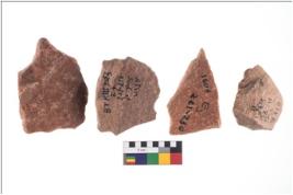 | Provenance / उद्गम/क्षेत्र | Bhimbetka, District-Raisen, BTK-1975, Trench-IIIF23, H6, F3, E2, E3, L- N A, Depth-81-85, 201-210, 221-230, Artifact No.-1475, 1435, 1489, 1606, Date- 10 5 1975, 12 5 1975 |