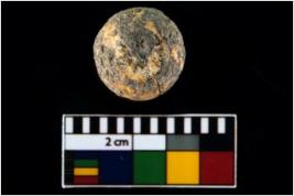 | Description / विवरण | A complete specimen of a plain globular shaped bead with a circular cross-section. It is ochre yellowish in colour. It is having a tubular perforation which is approximately parallel. It bores from one end only. It is having matt and rough surface. It is symmetrical round its axis. |