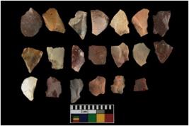 | Description / विवरण | There are n-20 of intact flake cores made up of chert. Some of them have bulge of percussion and some are flat flakes. |