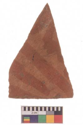| Description / विवरण | Specimen of red ware with decorative red pigment. |