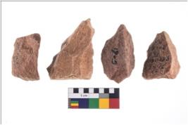 | Provenance / उद्गम/क्षेत्र | Bhimbetka, District-Raisen, BTK-1975-76, Trench-IIIF23, E3, E3, E4, I2, L- N A, Depth-126-130, 231-240, 281-285, 206-210, Artifact No.-693, 1905, 65, 559, Date- 5 4 1975, 6 5 1975, 5 1 1976 |