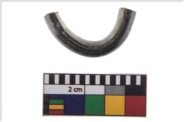 | Description / विवरण | A partially broken specimen of a monochromatic glass ear-ring with an ovular cross-section. It is black in colour. It is devoid of any kind of decoration. It is fragile, delicate in nature and having glossy, shiny finish and smooth surface. |
