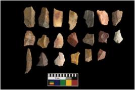 | Description / विवरण | There are n-20 of intact flake cores made up of chert. Some of them have bulge of percussion and some are flat flakes. |