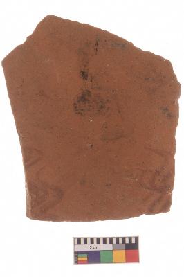 | Description / विवरण | Specimen of red ware with decorative wavy line pattern. |