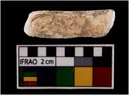 | Description / विवरण | A fragment of shell bangle, square in cross section and white in colour. |