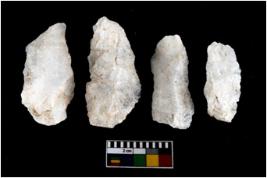 | Description / विवरण | There are n-4 of intact utilized flake cores made up of Quartz. Some of them have bulge of percussion and some are flat flakes. |