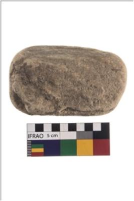 | Description / विवरण | A complete specimen of roughly oblong shaped hammerstone with battered periphery along with the circumference. It is made up of sandstone. |
