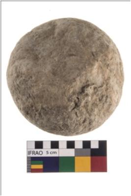 | Description / विवरण | A partially broken specimen of roughly round shaped hammerstone with battered periphery along with the circumference. It is broken from middle portion. It is made up of quartz. |