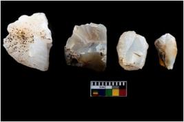 | Description / विवरण | A specimen of fluted core having several broad fluted marks indicating the detached blades from it |