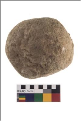| Description / विवरण | A complete specimen of roughly globular shaped hammerstone with battered periphery along with the circumference. It is made up of quartz with reddish colour shade. |