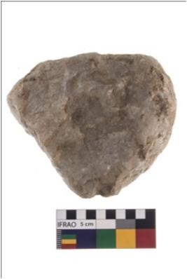 | Description / विवरण | A partially broken specimen of roughly round shaped hammerstone with battered periphery along with the circumference. It is used on all sides as the hammerstone almost broken at edges. It is made up of quartz. |