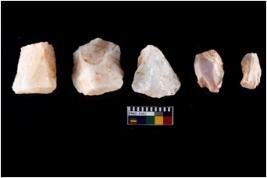 | Description / विवरण | There are n 5 Number of cores. Out of these n-3 made up of Quartz and n-2 made up of Chert.Three of them with impressions of crested ridge flakes. |