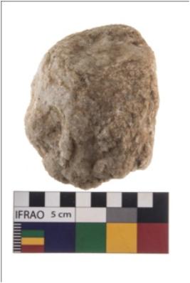 | Description / विवरण | A partially broken specimen of roughly round shaped hammerstone with battered periphery along with the circumference. It is broken from middle portion. It is made up of quartz. |