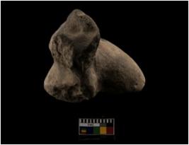 | Description / विवरण | The specimen is fragmented. Its front two legs, head and ears are broken. Appliqu design prominent, showing fan shaped design on back of the head and its two curved horns can be seen. It is coarse red and crudely made. |