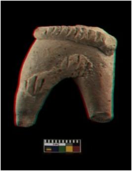 | Description / विवरण | The specimen is broken. Only two of its rear legs and appliqu tail remain. The legs are flat and narrow towards bottom. The appliqu tail is slanting with incised lines. There appliqu design going across the rump, it is decorated with incised lines. It is coarse red and coated with lime plaster. |