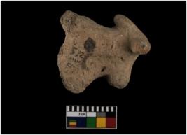 | Description / विवरण | The figurine shows only its head, one horn, prominent hump and two front legs. It is crudely made and is coarse red. |