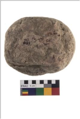 | Description / विवरण | A partially broken specimen of roughly round shaped hammerstone with battered periphery along with the circumference. It is broken from middle portion. It is made up of quartz. |
