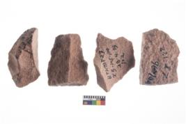 | Provenance / उद्गम/क्षेत्र | Bhimbetka, District-Raisen, BTK-1974-75, Trench-IIIF23, J1, I5, F2, I7, L- N A, Depth-201-205, 105-110, 56-60, 96-100, Artifact No.-97, 102, 41, 221, Date- 27 3 1974, 28 4 1975 |