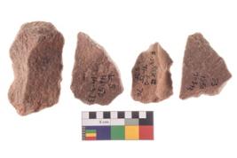 | Description / विवरण | Four worked utilised flakes. Many a times tapering and pointed at one end. |