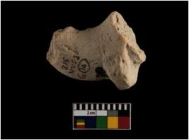 | Description / विवरण | The specimen is a broken body fragment of a animal toy. It is made of a coarse red soil and is lime coated. |