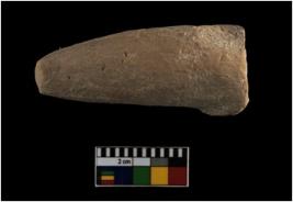 | Description / विवरण | The specimen is a broken, body fragment of a animal toy. It is made of a coarse red soil and is lime coated. |