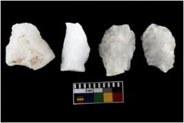 | Description / विवरण | There are n-4 of intact utilized flake cores made up of Quartz. Some of them have bulge of percussion and some are flat flakes. |