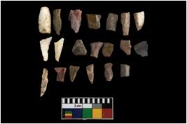 | Description / विवरण | There are n-20 of intact flake cores made up of chert. Some of them have bulge of percussion and some are flat flakes. |