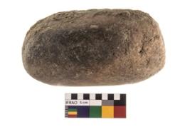 | Description / विवरण | A broken specimen of a oval shaped muller stone with oval section. |