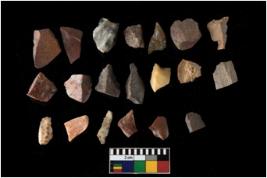 | Description / विवरण | There are n-20 of intact flake cores made up of chert. Some of them have bulge of percussion and some are flat flakes. |