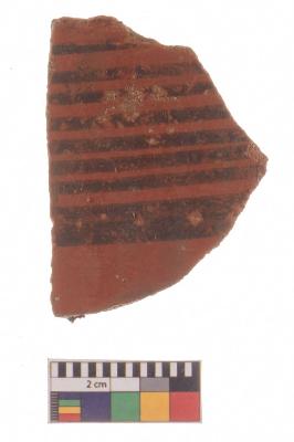 | Description / विवरण | Specimen of black on red ware with decorative geometric Linear Pattern painting. |