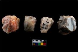 | Description / विवरण | A specimen of fluted core having several broad fluted marks indicating the detached blades from it |