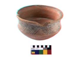 | Description / विवरण | A complete specimen of Black and red warer concave sided carinated bowl with featureless rim. The rim emphasised with a band running round outside and below it is the pattern formed by groups of closely drawn oblique line joining a broad horizontal band, a thin line along the carination edge and with three series of potter s mark inside. |