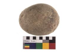 | Description / विवरण | A Hammer stone roughly rounded in shape with grounded edges. |