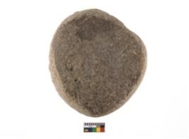 | Description / विवरण | A partially broken anvil roughly egg shaped, upper surface slightly convex under surface is also slightly convex and show original pebble surface, cross section roughly oval with one end broader than the other. |