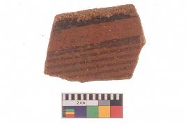 | Description / विवरण | Specimen of red ware with decorative geometric Linear Pattern painting. |