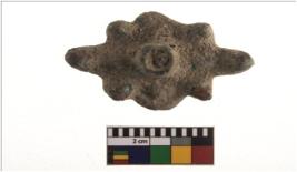 | Description / विवरण | A partially broken specimen of a toe ring. It shaped like a turtle with a small stud at its centre. It is highly corroded and having rough surface. |