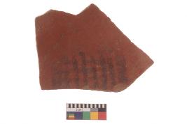 | Description / विवरण | Specimen of red ware with decorative geometric Net Pattern painting. |