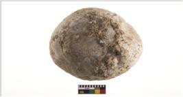 | Description / विवरण | A partially broken specimen of roughly round shaped hammerstone with battered periphery along with the circumference. It is roundish at one end and broken from other end. It is made up of quartzite. It is having a glossy and rough surface. |