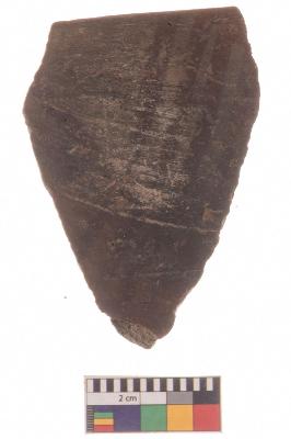 | Description / विवरण | Specimen of gray ware with decorative geometric Linear Pattern painting. |