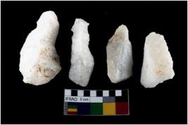 | Description / विवरण | There are n-4 of intact utilized flake cores made up of Quartz. Some of them have bulge of percussion and some are flat flakes. |