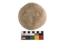 | Description / विवरण | A partially broken specimen of roughly round shaped hammer stone with battered periphery along with the circumference |