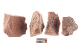 | Description / विवरण | Four worked utilised flakes. Many a times tapering and pointed at one end. |