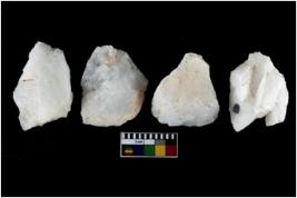 | Description / विवरण | There are n-4 of intact utilized flake cores made up of Quartz. Some of them have bulge of percussion and some are flat flakes. |
