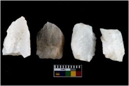 | Description / विवरण | There are n-4 of intact utilized flake cores made up of Quartz. Some of them have bulge of percussion and some are flat flakes. |