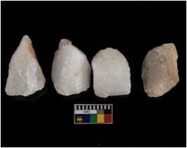 | Description / विवरण | There are n-4 of cores. All are made up of Quartz. All of them are intact fluted cores without any trace of crested ridge flakes. |