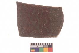 | Description / विवरण | Specimen of red ware with decorative wavy line pattern |