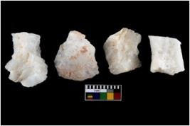 | Description / विवरण | There are n-4 of intact utilized flake cores made up of Quartz. Some of them have bulge of percussion and some are flat flakes. |